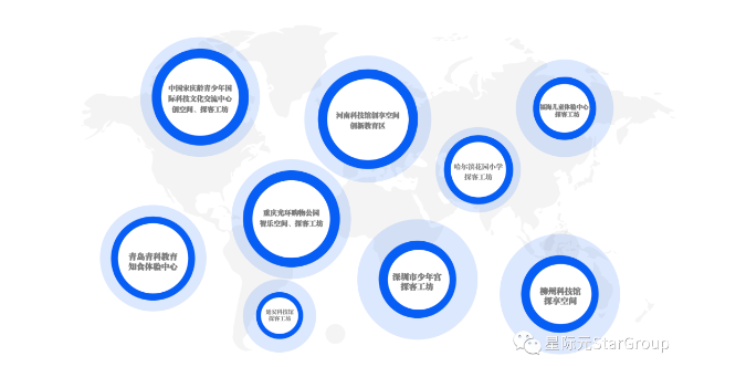 星际元Star Group 始终专注于青少年创新思维与21世纪核心技能的培养,联合世界顶级科技馆合作,先后设计、建设中国宋庆龄青少年国际科技文化交流中心创空间、探客工坊,福海儿童体验中心、探客工坊,青岛青科教育知食体验中心,河南科技馆创享空间、创新教育区,深圳市少年宫探客工坊等等。国家级、省市级重点项目。